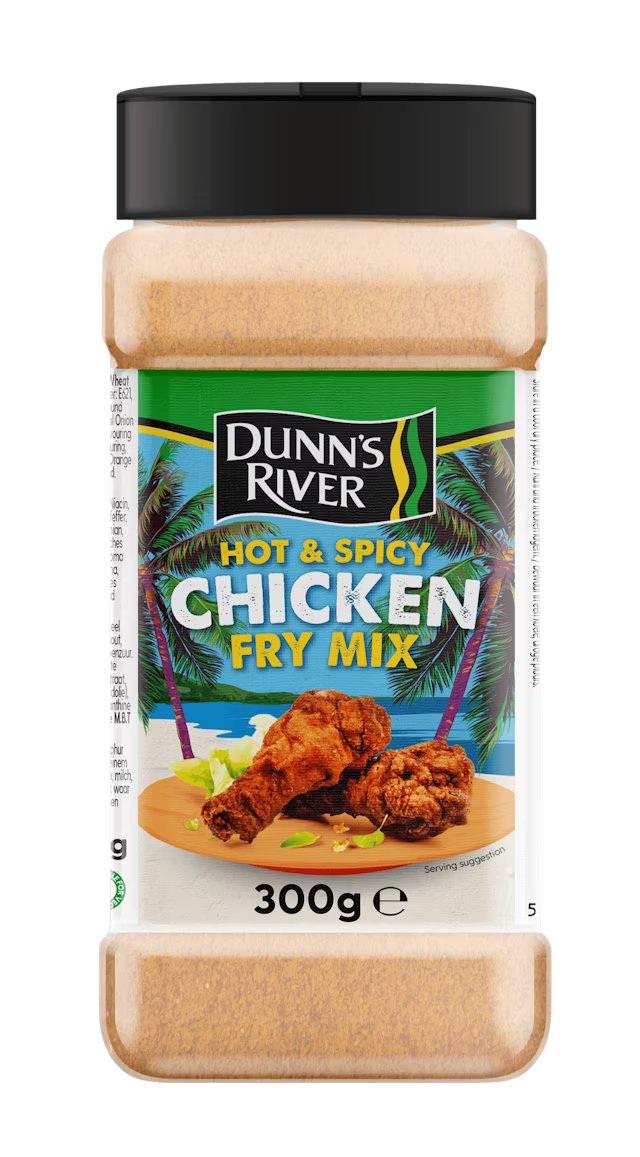 Coat the chicken pieces in the dry mix. Heat oil in a deep frying pan. Fry the chicken until cooked through and golden brown. Serve with Dunn’s River Rice & Peas and fried plantain for a Caribbean-style feast.